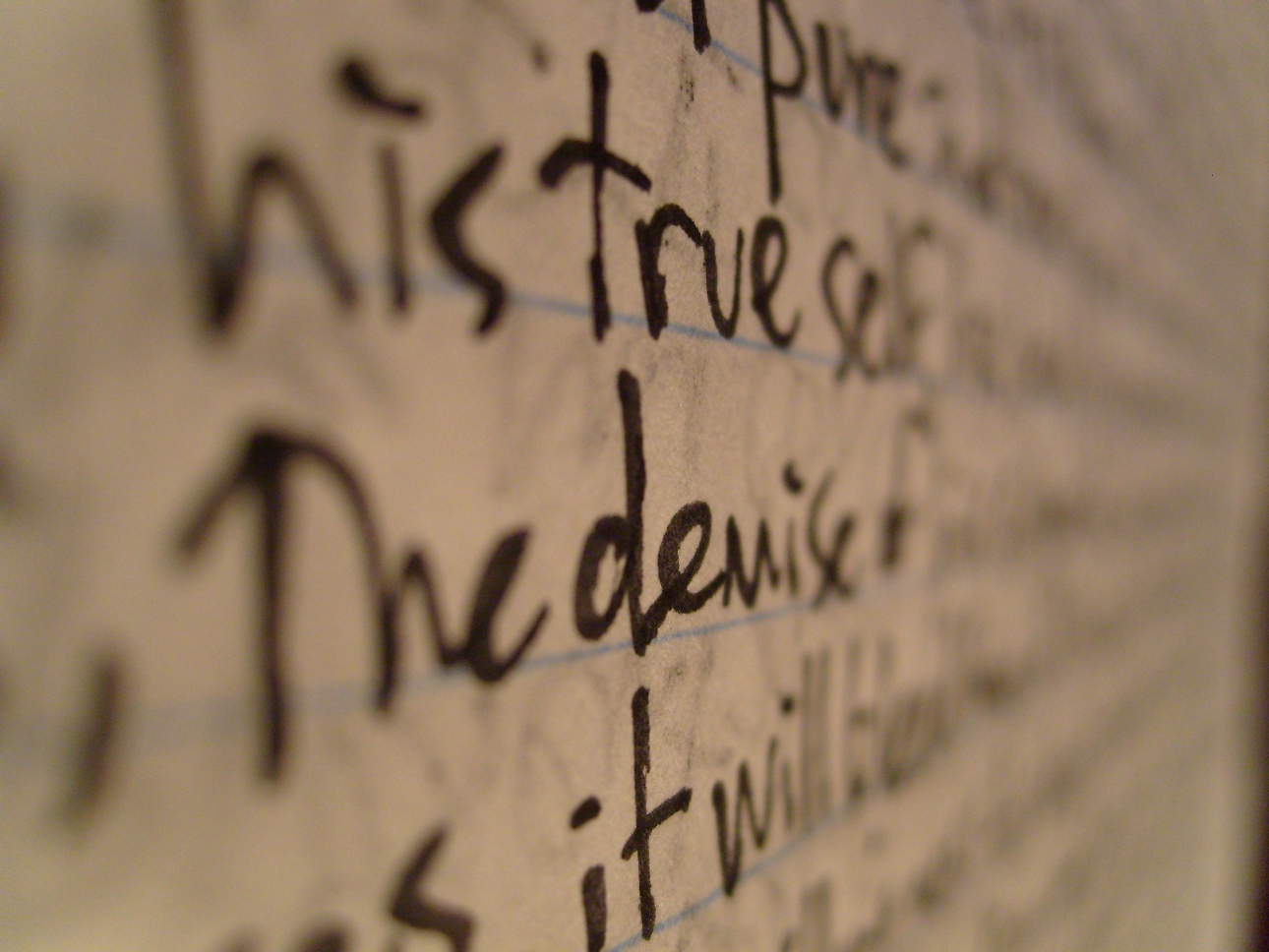 Throttled awake by nightmares, these powerful dreams command my participation. Dreams of ridicule and exclusion. Nightmares of a severely practical nature. They descend upon me like latent fire and floodwater, frightening in their tangibility, their believability. I experience them fully and lie awake ruminating once again my precise role in this life. I ponder the nature of the nightmares, their purpose in my world. Have they been born to thrust me into some sort of action or inaction? Fear is a mechanism of creation, a shield against failure. My mind is sending me signals, frightening me out of this trap where ideas fall short, where indolence and stunted creativity are hell because the turning point is always right at my fingertips. Like a stutterer burdened to defend his life with a torturous oratory, the ideas clear and righteous in his mind, the words webs of quicksand on his lips.
